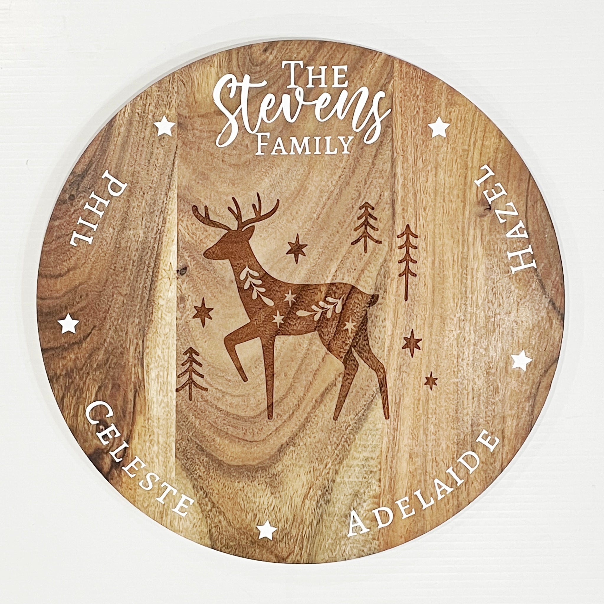 Customised Christmas round reindeer board.